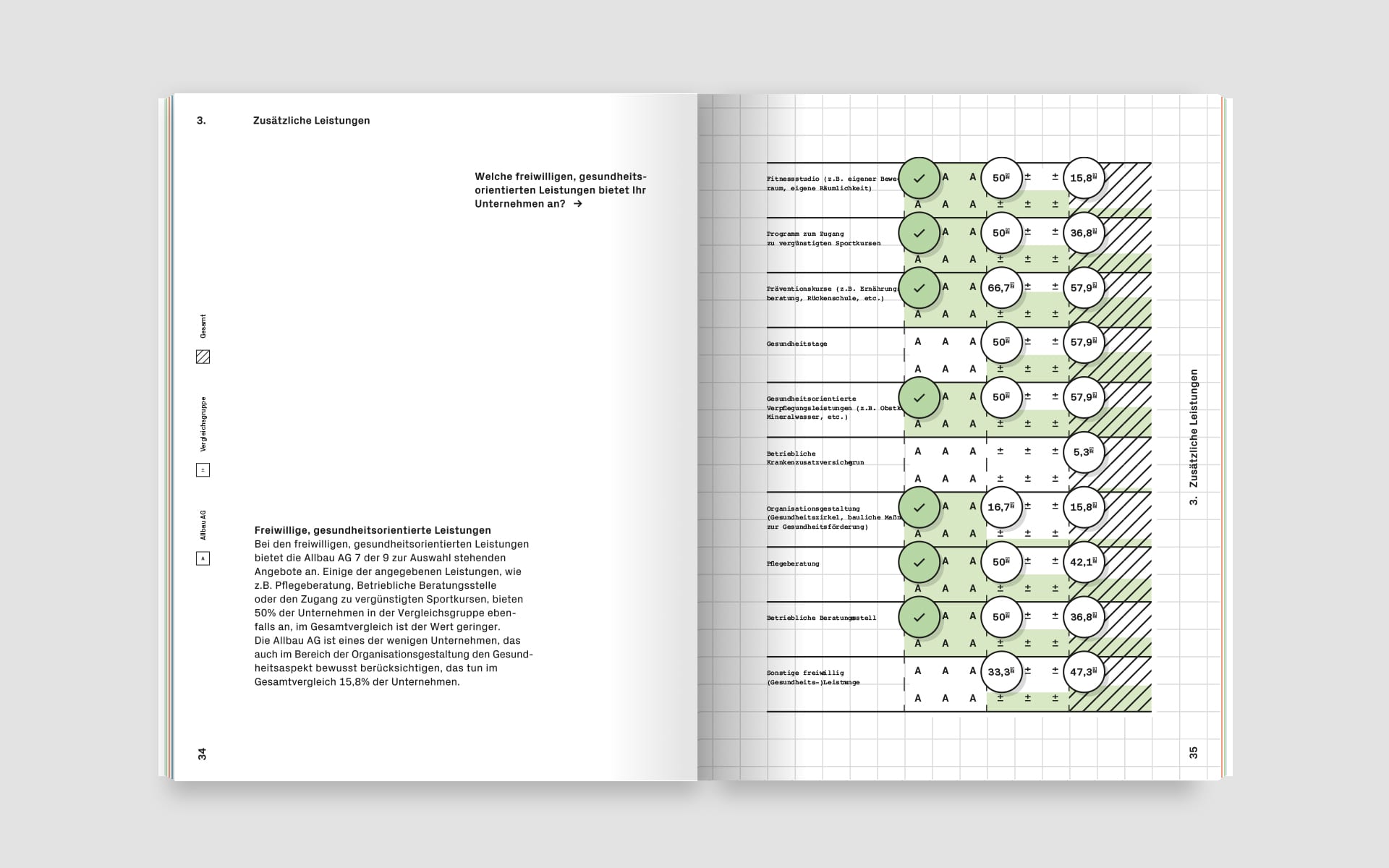 Das speziell für den Bericht entwickelte Piktogramm-Set erhöht die Dynamik innerhalb der einzelnen Themengebiete und ermöglicht eine leichtere Vermittlung der Analyseergebnisse. Durch die abwechslungsreiche Gestaltung wird der Leser immer wieder neu aktiviert, sich mit den Inhalten auseinanderzusetzen.