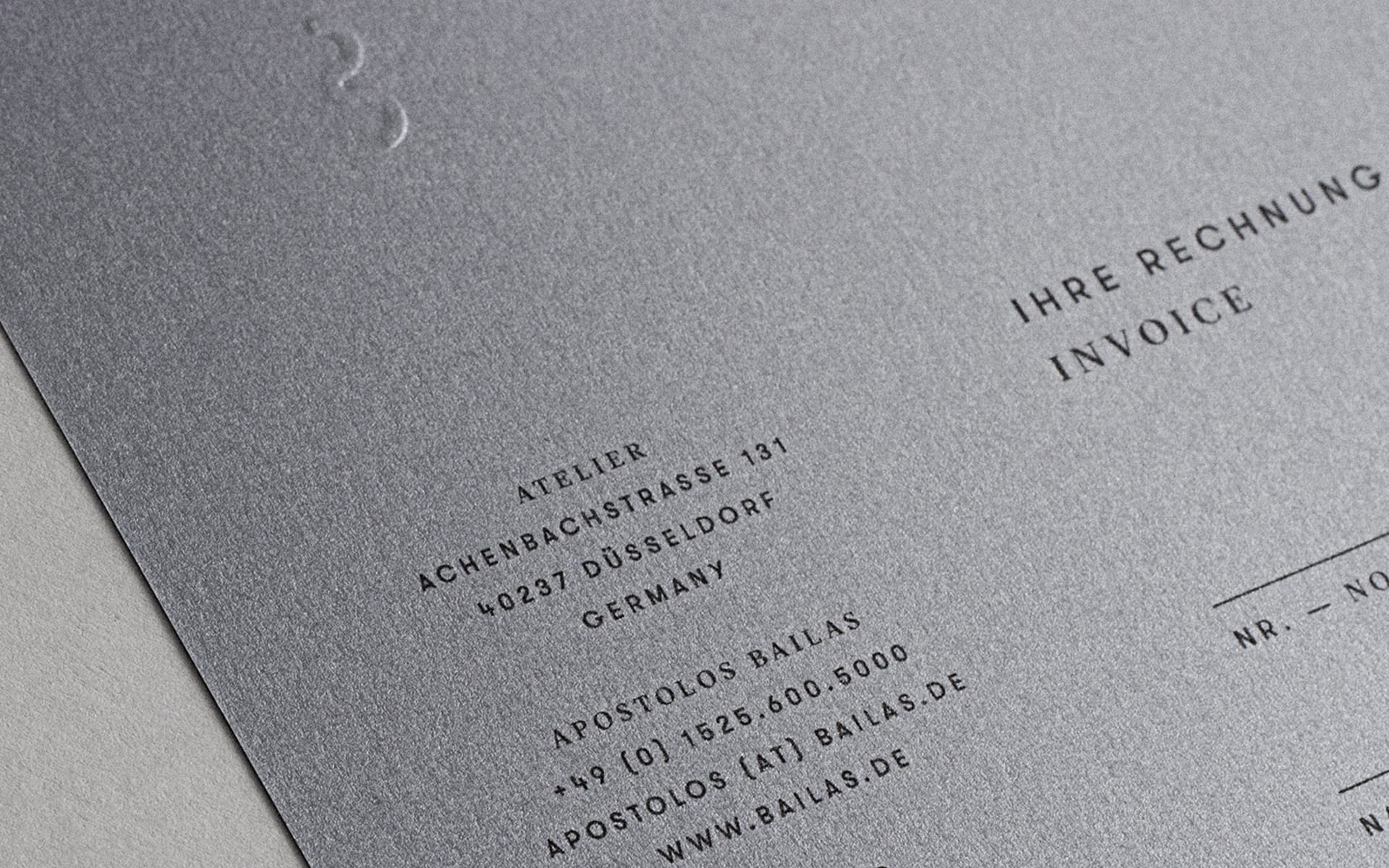 Speziell ausgesuchte Geschäftspapiere mit individueller Prägung unterstreichen den exklusiven Anspruch der Marke und runden das Erlebnis im Atelier ab.