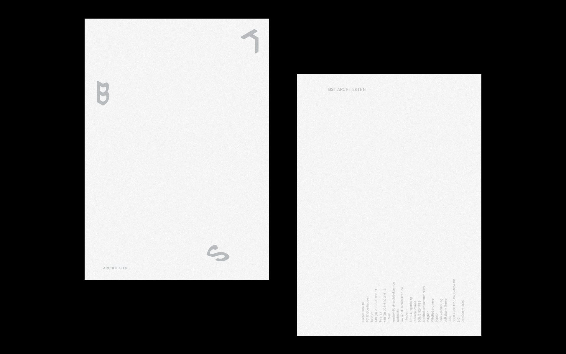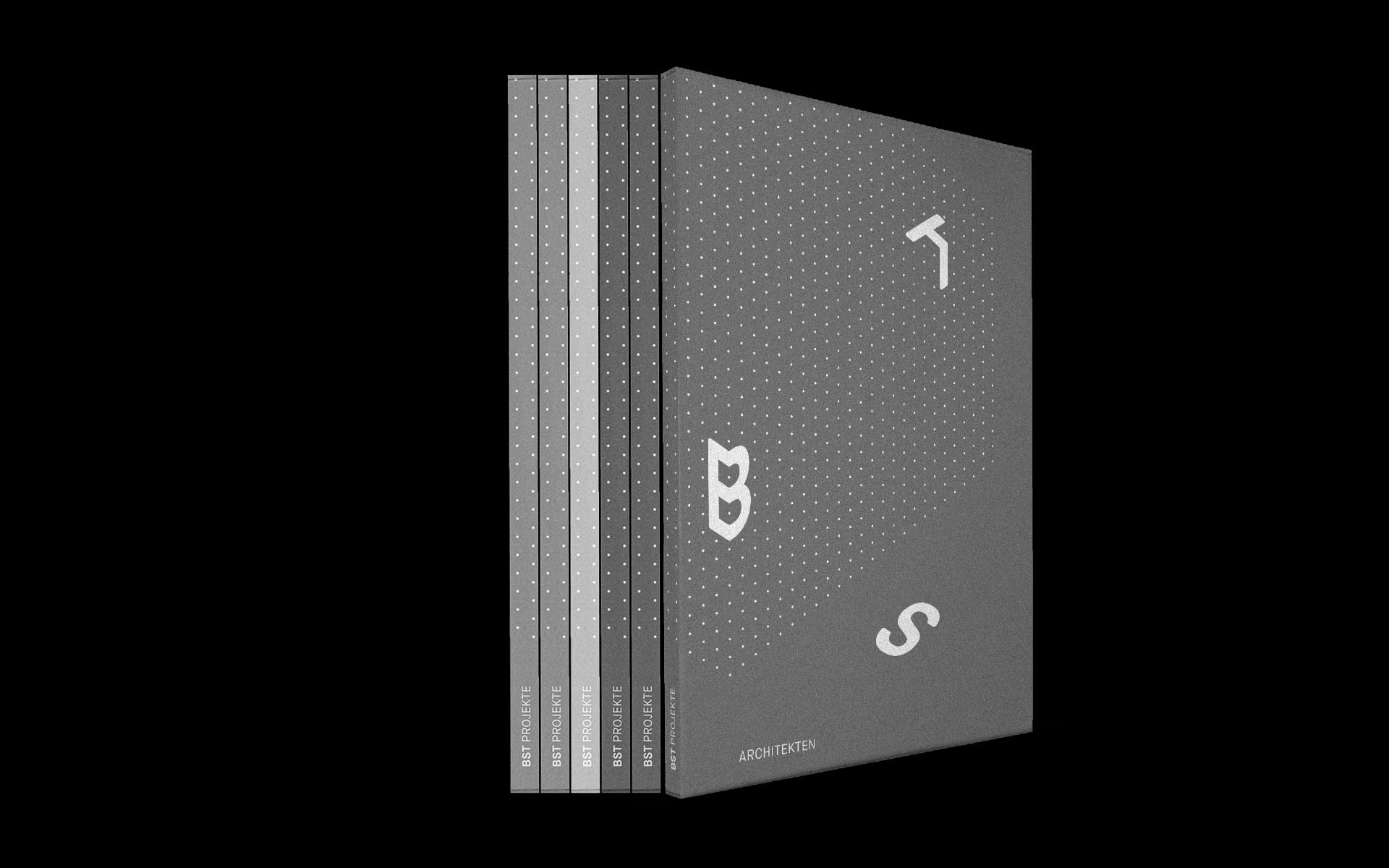 BST works between 2D (design, draft) and 3D (finished building). On the way to the finished building, BST always incorporates several perspectives into the project - the needs of the users, the requirements of the client and the architects' own demands. Isometry combines 2D and 3D as a graphic form of representation and, in a simplified form, forms the framework for the design concept. Within this framework, among other things, isometric letters have been created, which are repeatedly rearranged depending on the content and medium and thus symbolise the different perspectives.
