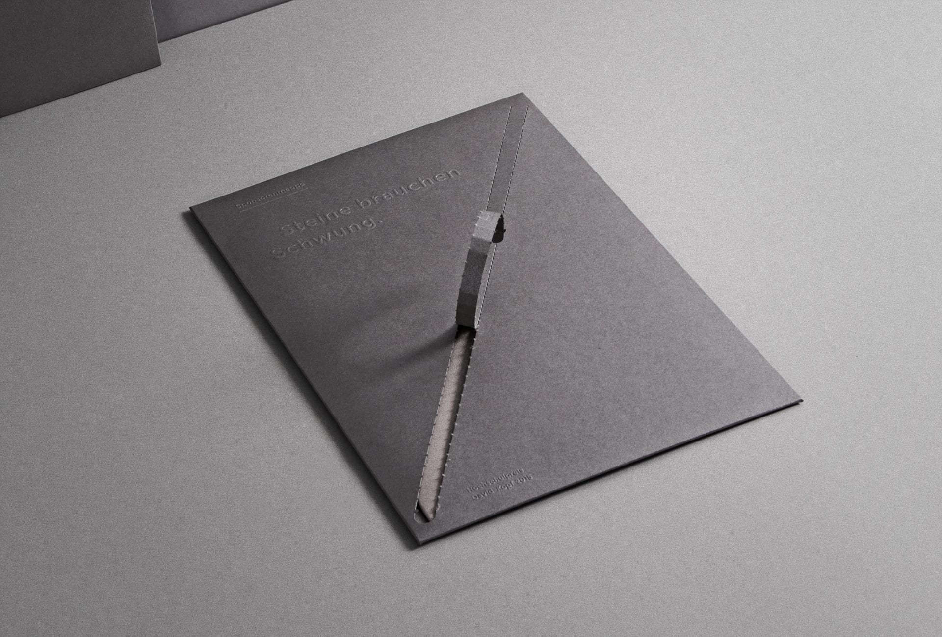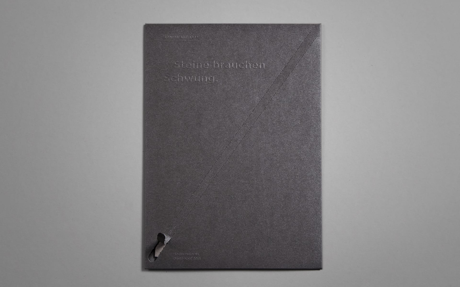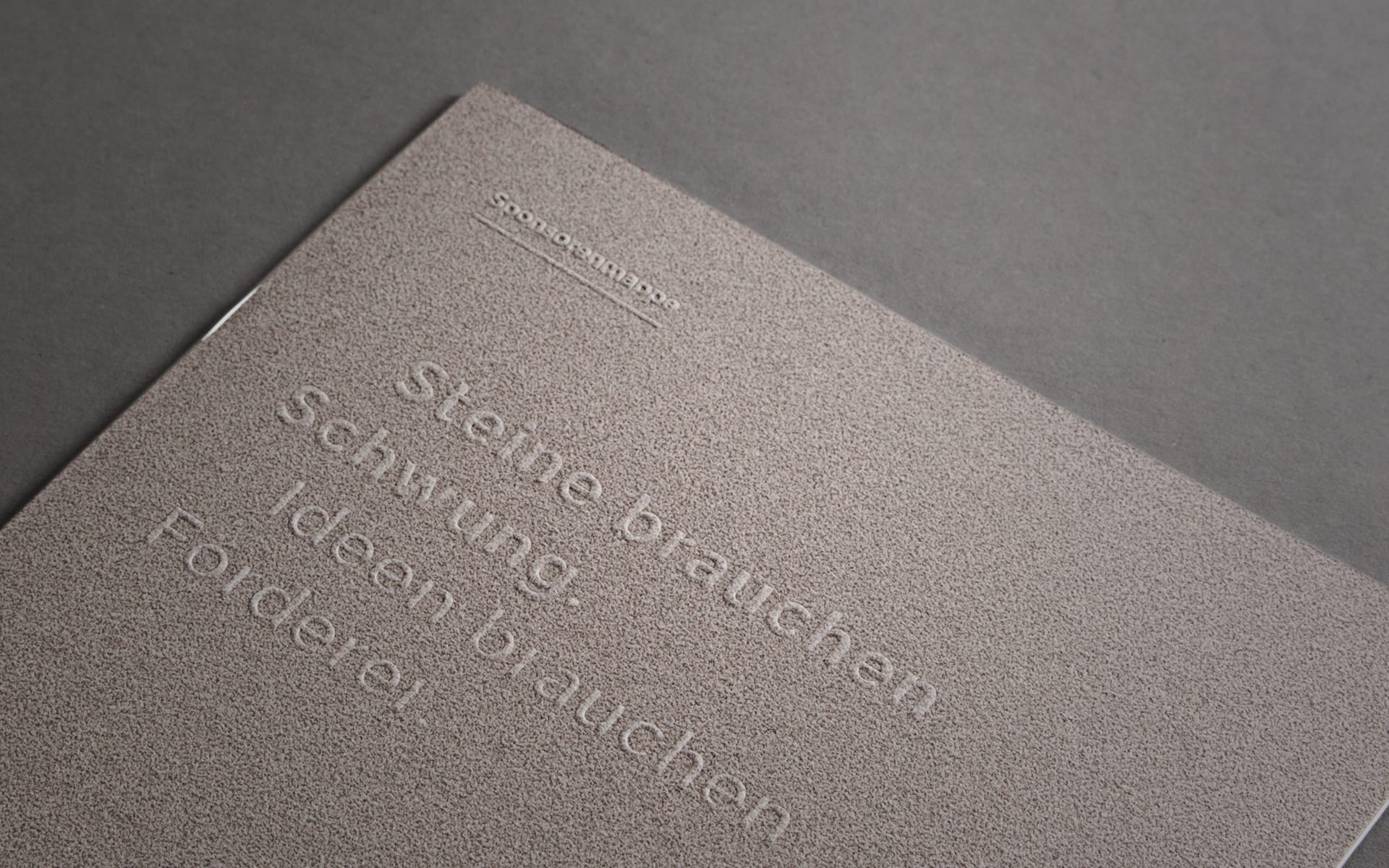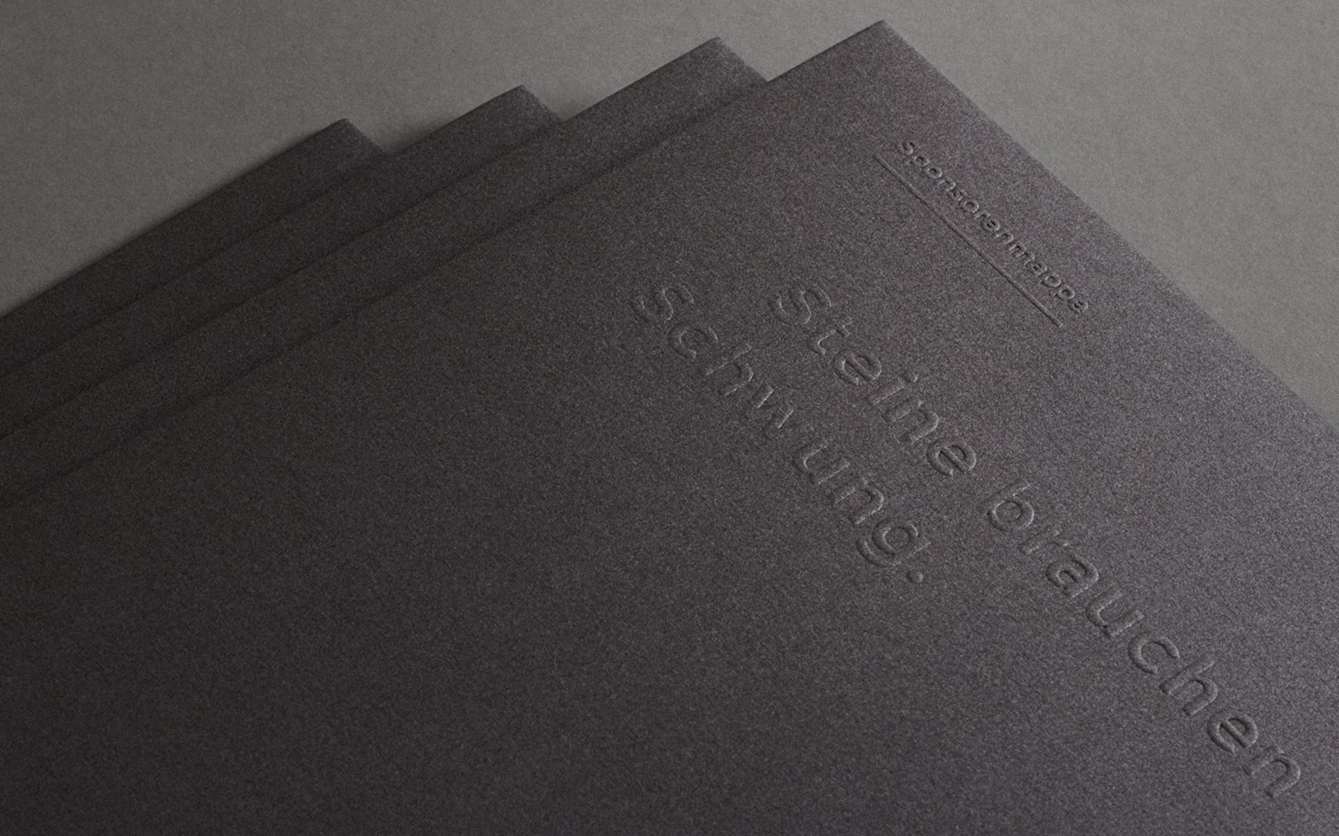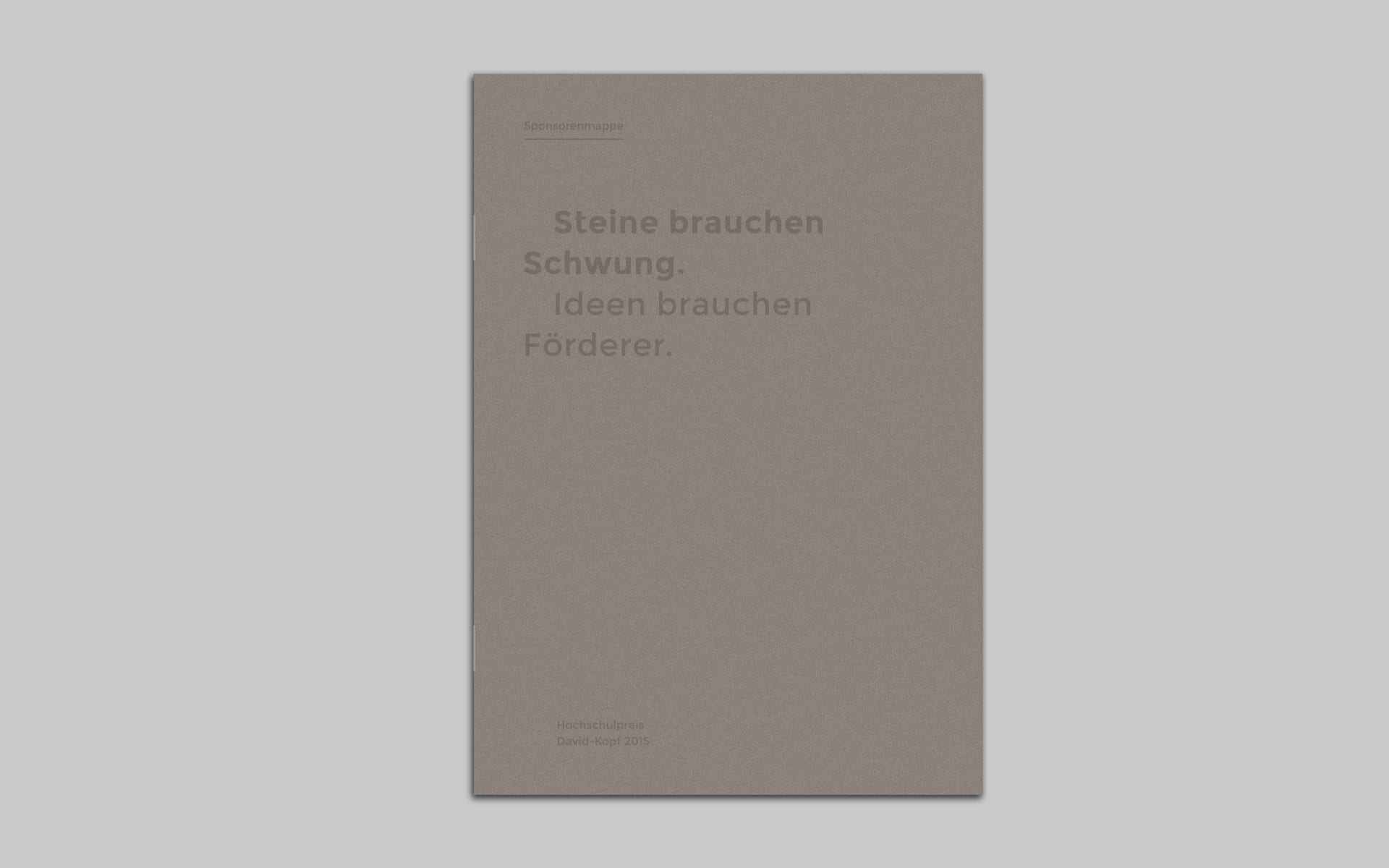 In the newly designed sponsoring brochure, the reduced design and natural materials intertwine. Inspired by the battlefield on which David Goliath faced, we have worked with papers of strong character reminiscent of earth and stones.
