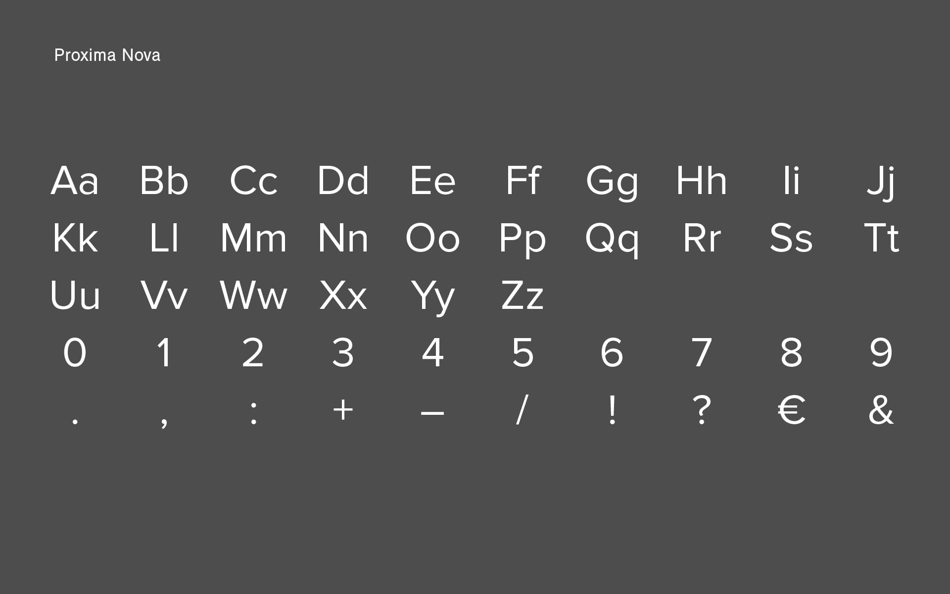 Die Proxima Nova ist eine zeitgenössische Schrift, die moderne Proportionen mit einem geometrischen Erscheinungsbild vereint und so sowohl analog als auch digital verwendbar ist. Die Clavo erweitert das Schriftbild durch ihre subtilen Details um eine gewisse Wärme, sodass durch die Kombination der beiden Schriften auch in der Typographie der moderne Brauhauscharme der Fuchsjagd zur Geltung kommt.